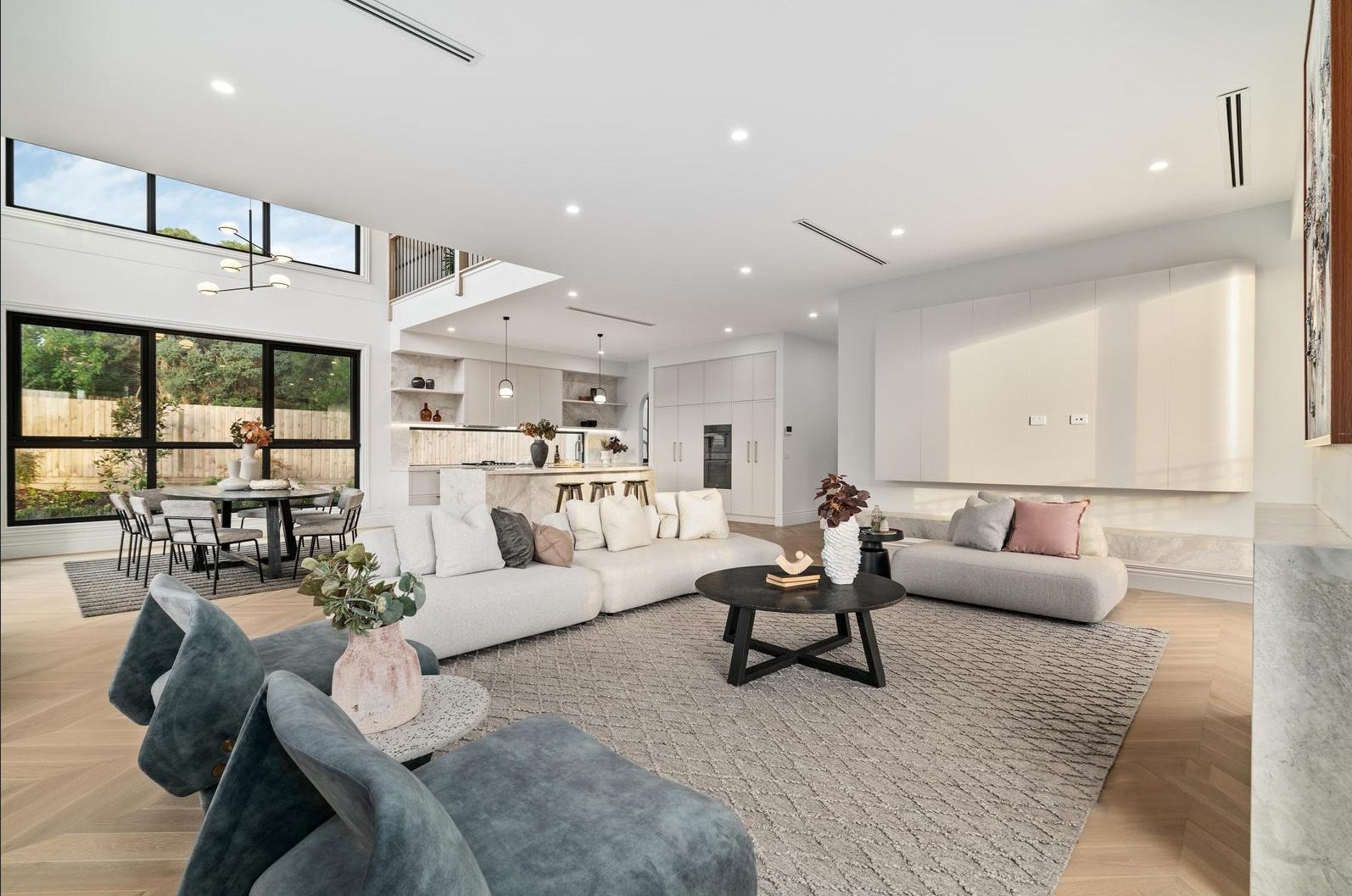 The architectural style shows elements of neoclassicism with its use of columns, symmetrical design, and clean lines. This gives the house a sense of tradition and elegance, reminiscent of classical architecture. Despite the neoclassical influences, the client’s brief was to incorporate modern elements within the interior, such as large windows with sleek frames and a minimalist colour scheme. This blend of classic and modern creates a unique and contemporary look.