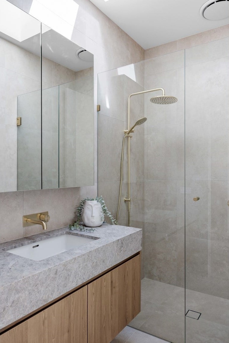 For this project, our client has given us the task to match the material selections with brass fitting and fixtures in the kitchen and bathrooms.  As well as maintaining a simple material palette on the external , we have also opted for more neutral colour tones in the interior to emphasize the bold choices in fitting and fixtures.