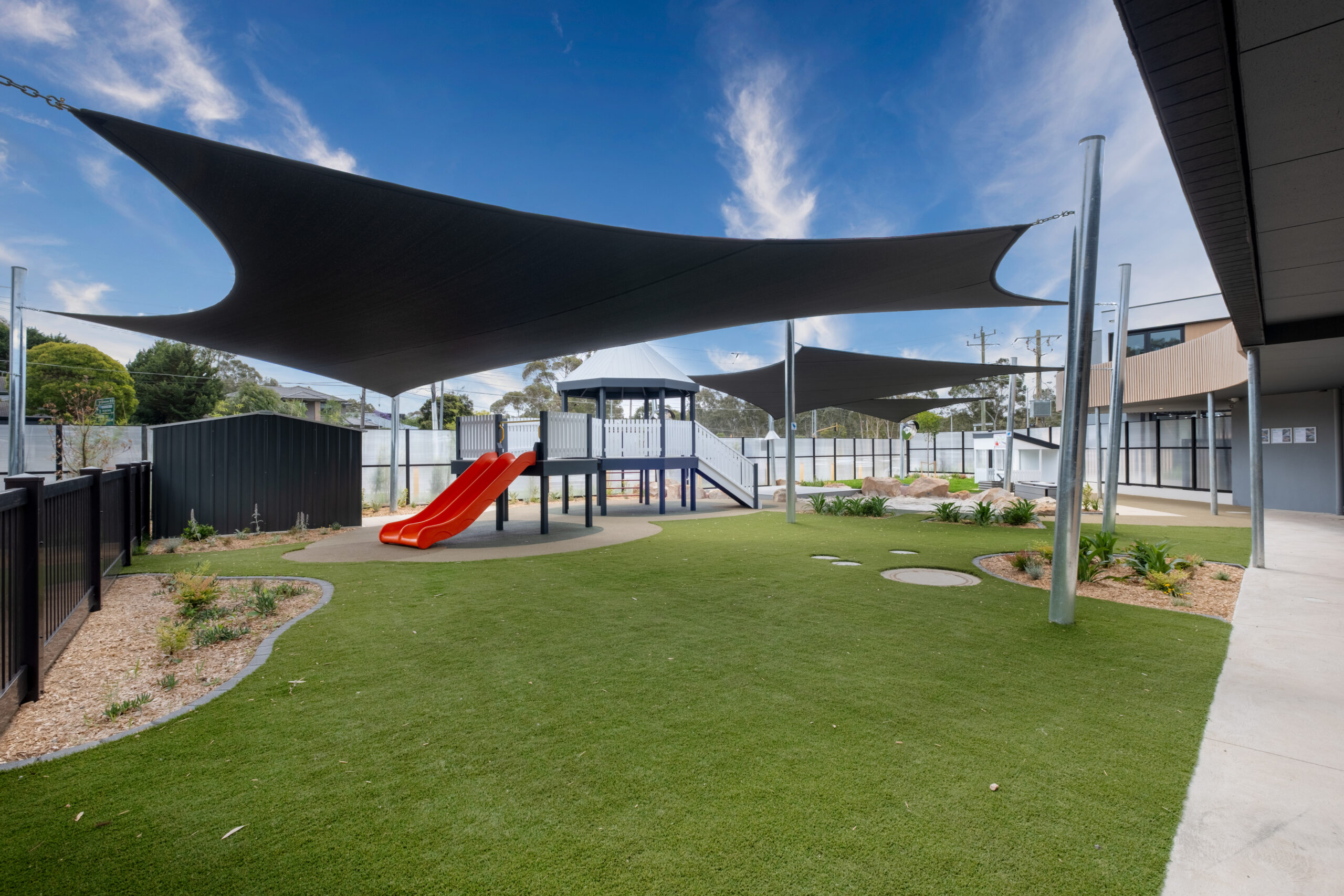 For the apartments and the childcare, we have designed the external façade of this apartment and childcare utilising timber look cladding and timber battens to integrate into the green streetscape.